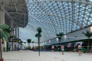 Семейный аквапарк в частности находиться под огромной крышей из стекла, которые пропускают солнечные лучи и позволяют насладиться теплом в любое время года. Аквапарк разделен на много секторов. Общая площадь аквапарка 5000 квадратов. Музыка сразу придает ощущения расслабленности, что Вы находитесь на отдыхе. На территории есть большой волновой бассейн, который находиться сразу как Вы входите в сам аквапарк с правой стороны. Есть зона с горками, разной высоты. Веселые спуски доставляют огромное удовольствие и веселье как взрослым так и детям. Разрешено кататься детям только старше семи лет. Рядом с горками есть место, где можно очень вкусно покушать и даже выпить разные вкусные коктейли, в ресторане есть также детское меню, и это очень удобно.
