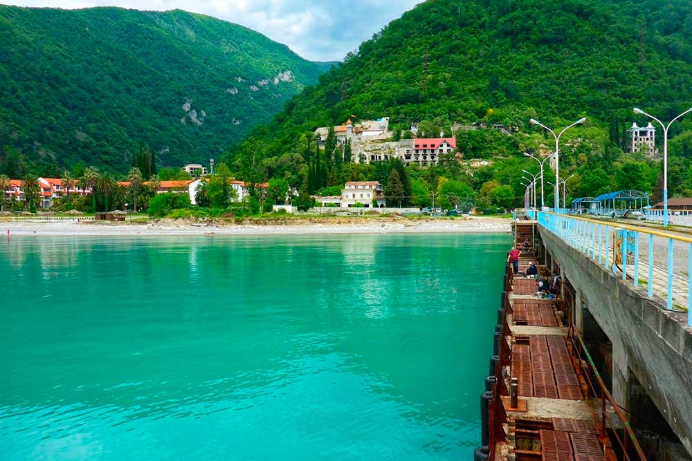 - "Абхазия-Палас" - пятизвездочный отель, расположенный на берегу Черного моря, с собственным пляжем, бассейнами, ресторанами и спа-центром.